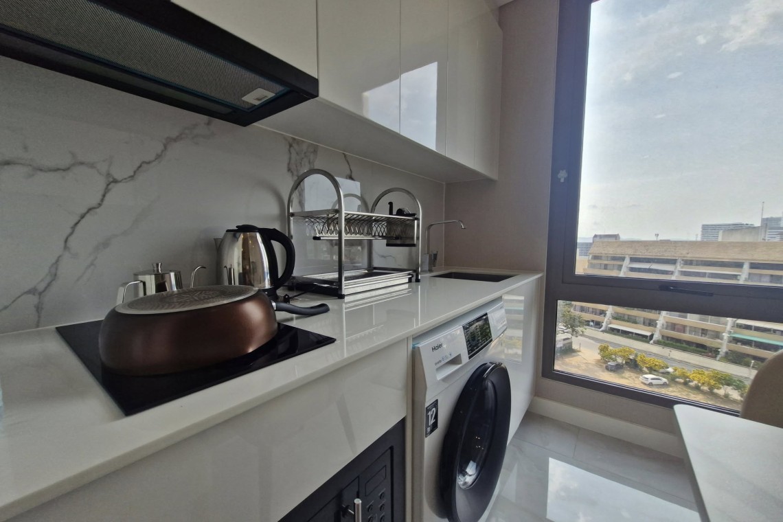 Located directly on Jomtien Beach Road, the condo allows you to walk to the sand in seconds while enjoying a wide selection of restaurants, cafés, beach bars, and shops. The area is well-connected by public transport to Pattaya City, making it convenient for both work and leisure.